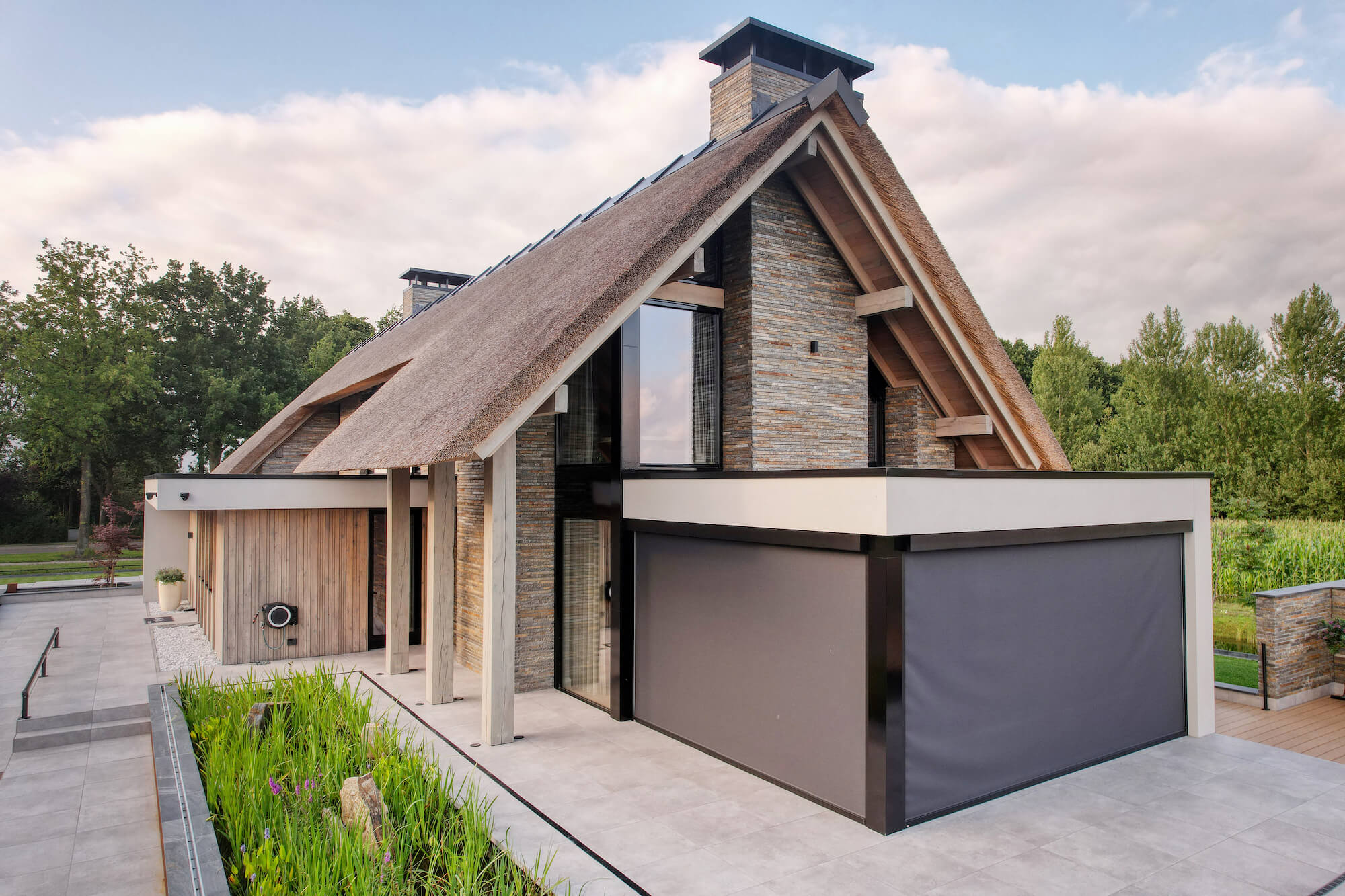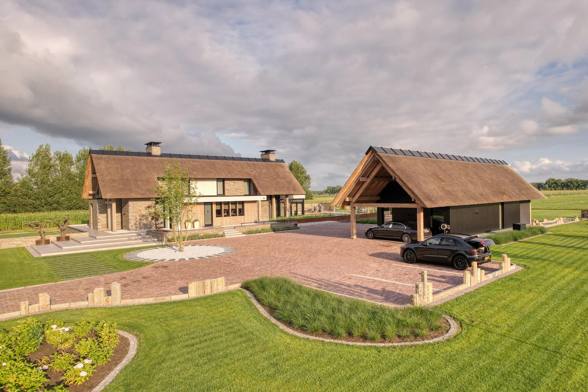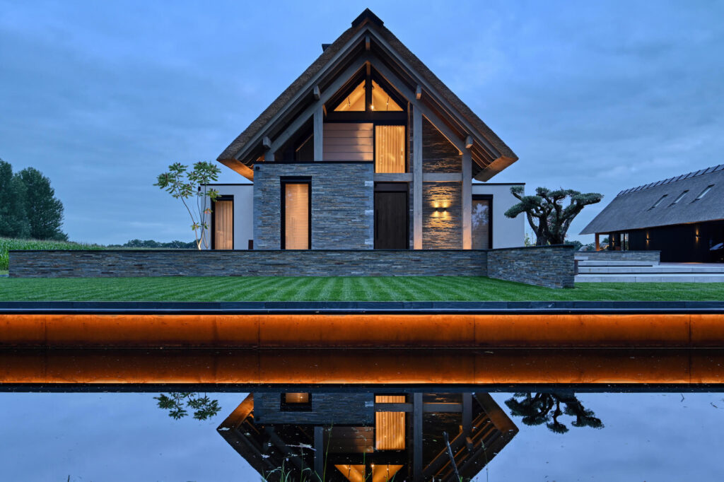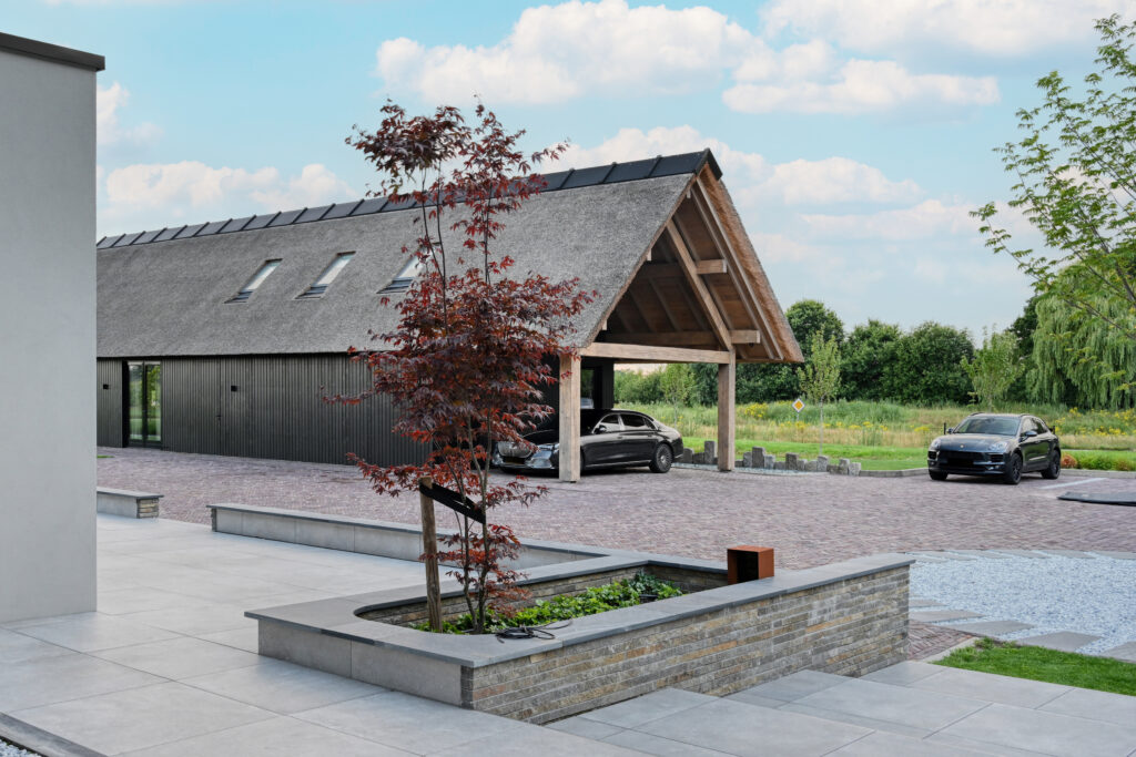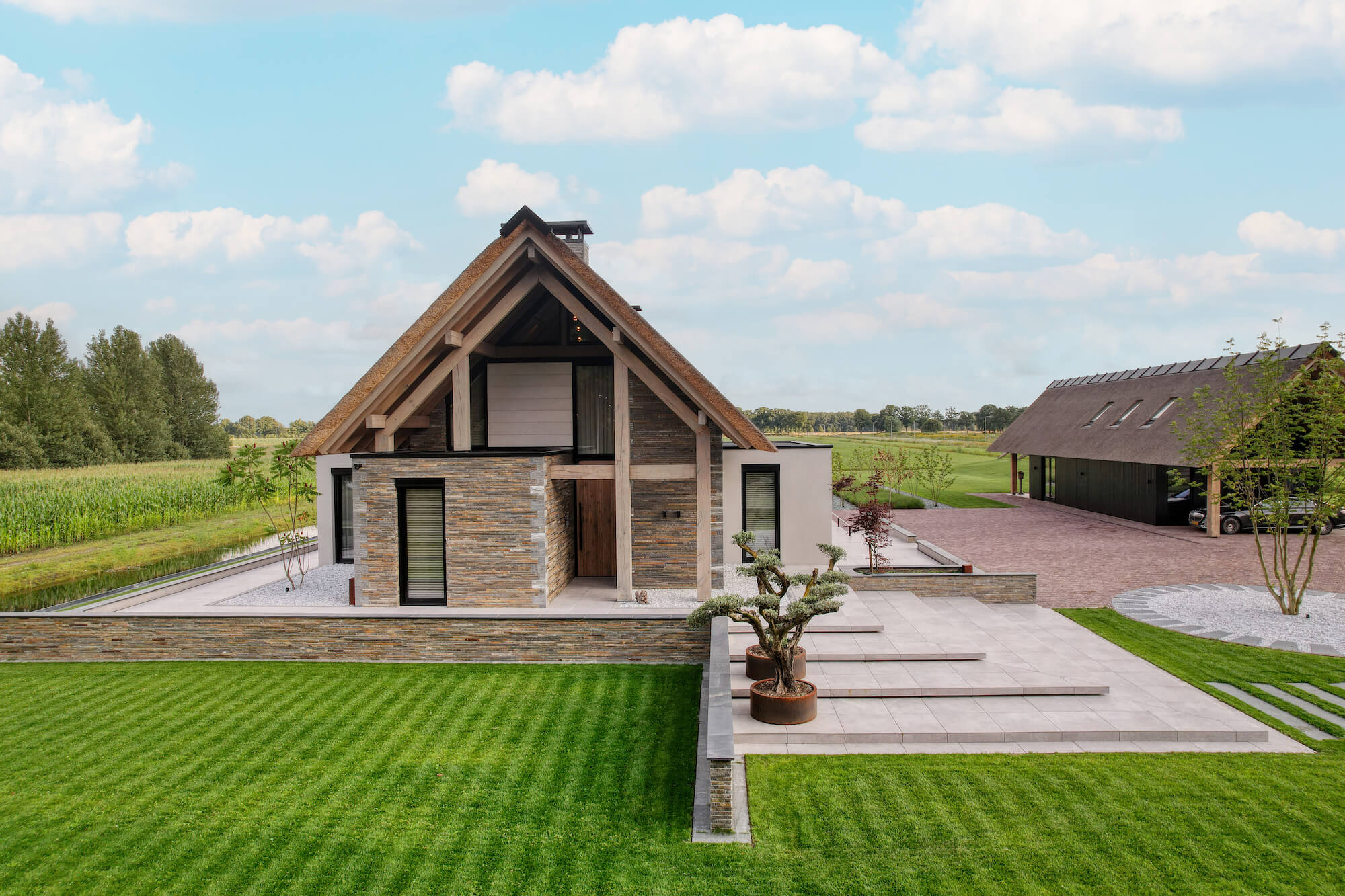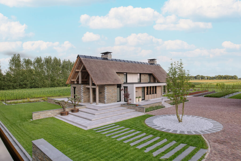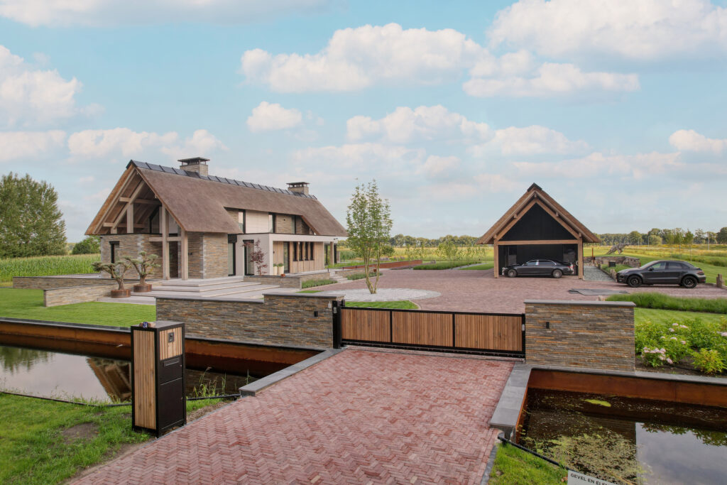 De Droomvilla Hollandscheveld is een modern woonproject waarin natuursteen de hoofdrol speelt. Van de gevel tot de tuin en het interieur is natuursteen op unieke wijze toegepast, met oog voor detail en vakmanschap. Voor dit project is gekozen voor de Lapide Bricks in KV12, een gevelsteen gemaakt van 100% natuursteen. Deze steen combineert de uitstraling van traditioneel metselwerk met de pure, robuuste textuur van natuursteen. Het resultaat is een gevel die tijdloos én onderscheidend is — perfect passend bij de moderne architectuur van deze villa. Niet alleen aan de buitenzijde, maar ook in de tuin en het interieur is natuursteen toegepast. Grove natuursteenelementen zorgen voor een krachtig lijnenspel, terwijl de fijnere afwerkingen binnen zorgen voor rust en luxe. Zo vormt natuursteen de verbindende factor in het totale ontwerp. De Lapide Bricks zijn niet alleen esthetisch, maar ook duurzaam. Gemaakt van een herbruikbaar, natuurlijk materiaal dragen ze bij aan een lange levensduur en een milieuvriendelijke bouwstijl. Droomvilla Hollandscheveld laat zien wat er mogelijk is wanneer natuursteen centraal staat — puur, tijdloos en duurzaam. Garagedeur op maat: Different Doors, Fotografie: Henk Sieders. The Art of Living magazine – Fotografie: Jaro van Meerten.