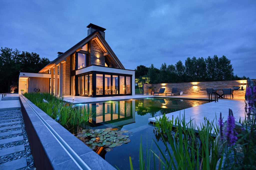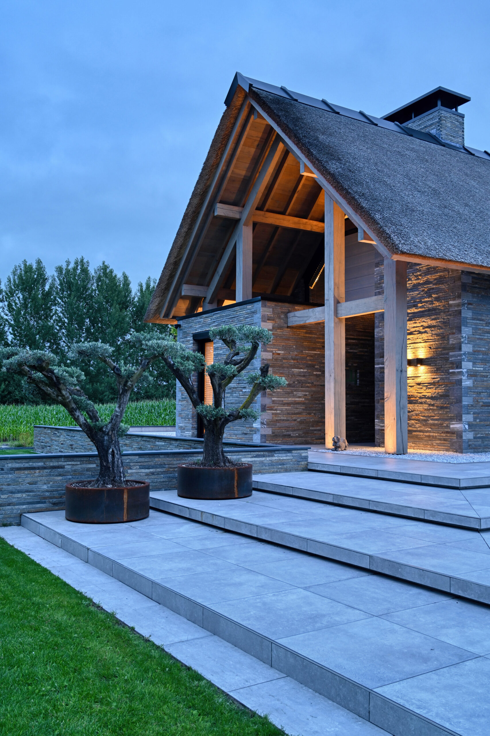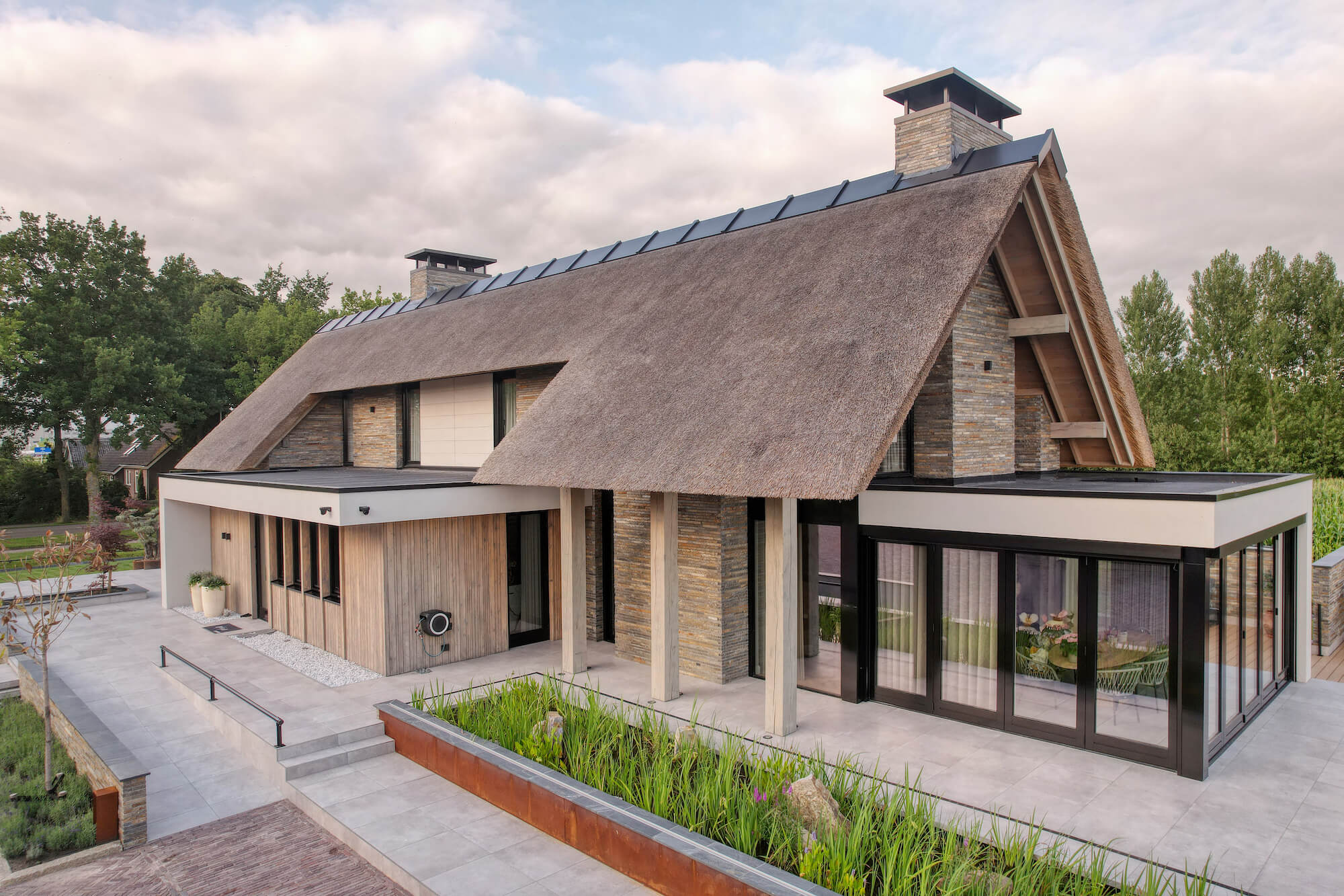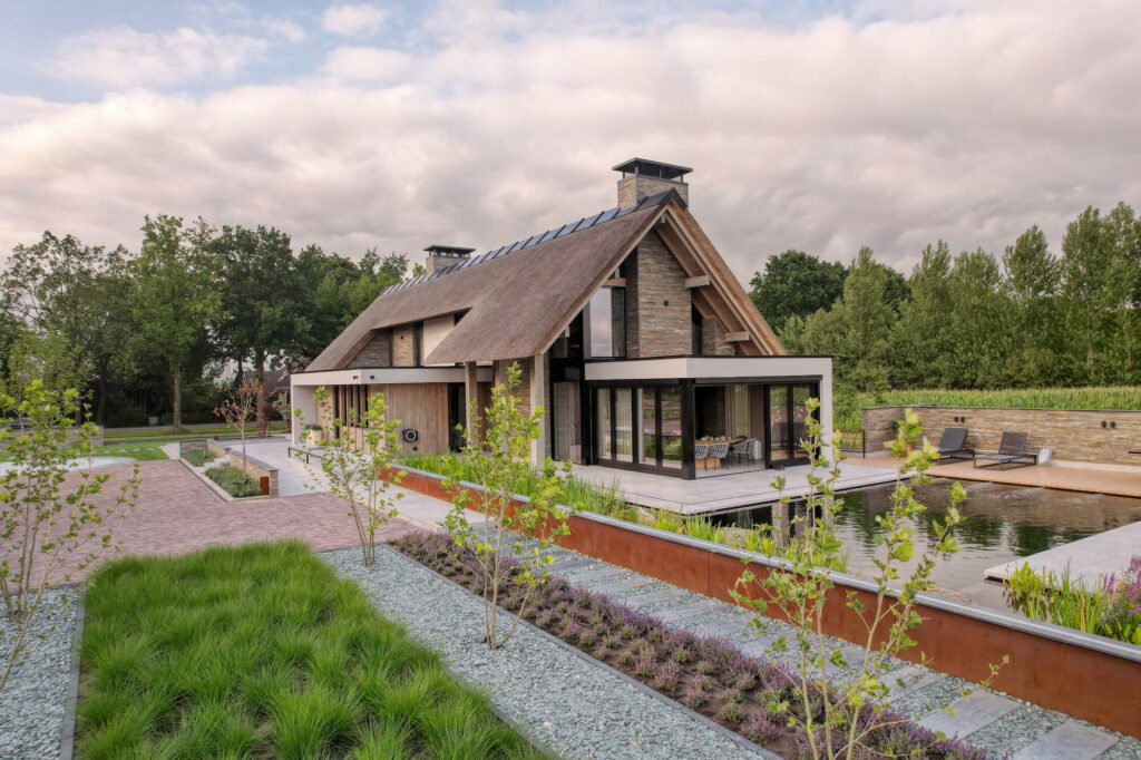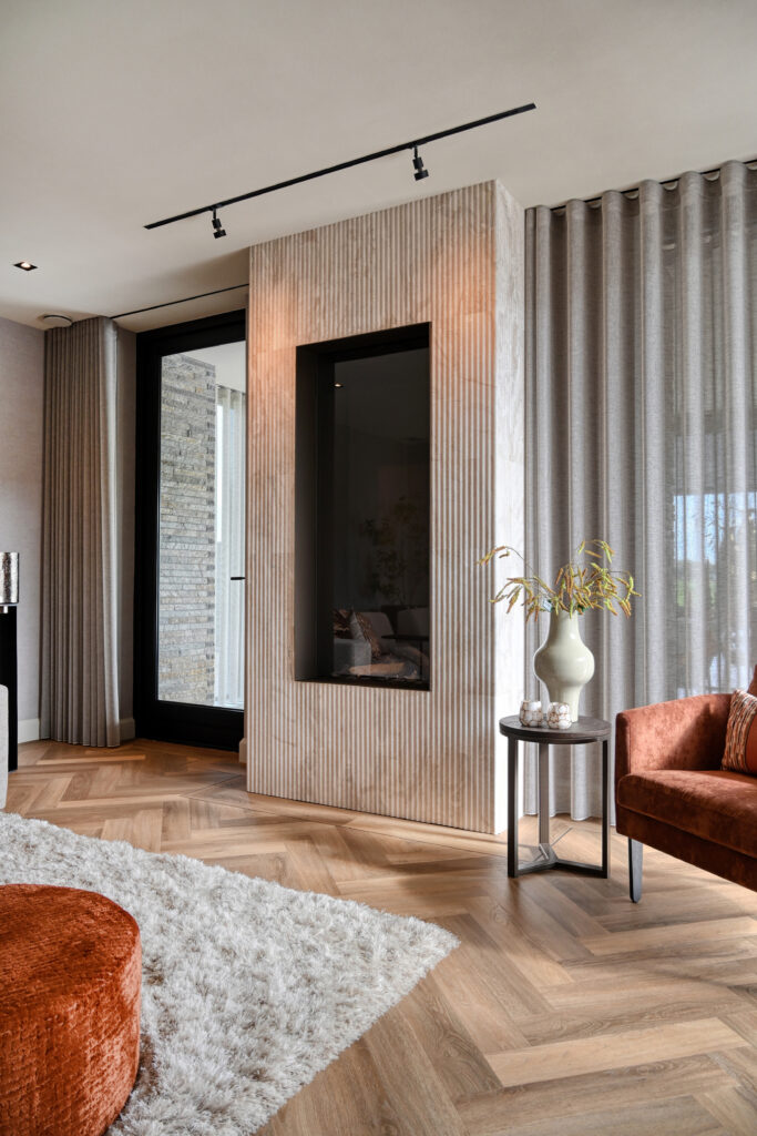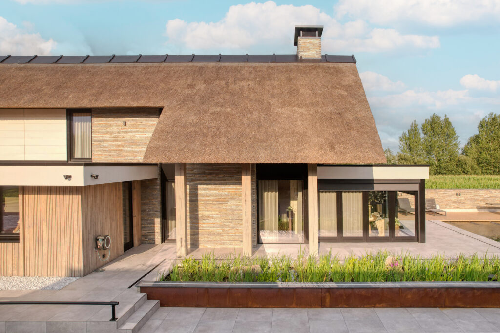 De Droomvilla Hollandscheveld is een modern woonproject waarin natuursteen de hoofdrol speelt. Van de gevel tot de tuin en het interieur is natuursteen op unieke wijze toegepast, met oog voor detail en vakmanschap. Voor dit project is gekozen voor de Lapide Bricks in KV12, een gevelsteen gemaakt van 100% natuursteen. Deze steen combineert de uitstraling van traditioneel metselwerk met de pure, robuuste textuur van natuursteen. Het resultaat is een gevel die tijdloos én onderscheidend is — perfect passend bij de moderne architectuur van deze villa. Niet alleen aan de buitenzijde, maar ook in de tuin en het interieur is natuursteen toegepast. Grove natuursteenelementen zorgen voor een krachtig lijnenspel, terwijl de fijnere afwerkingen binnen zorgen voor rust en luxe. Zo vormt natuursteen de verbindende factor in het totale ontwerp. De Lapide Bricks zijn niet alleen esthetisch, maar ook duurzaam. Gemaakt van een herbruikbaar, natuurlijk materiaal dragen ze bij aan een lange levensduur en een milieuvriendelijke bouwstijl. Droomvilla Hollandscheveld laat zien wat er mogelijk is wanneer natuursteen centraal staat — puur, tijdloos en duurzaam. Garagedeur op maat: Different Doors, Fotografie: Henk Sieders. The Art of Living magazine – Fotografie: Jaro van Meerten.