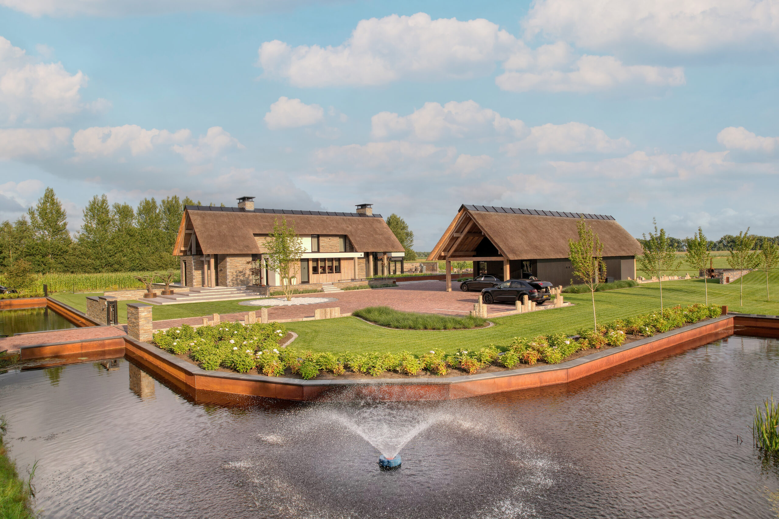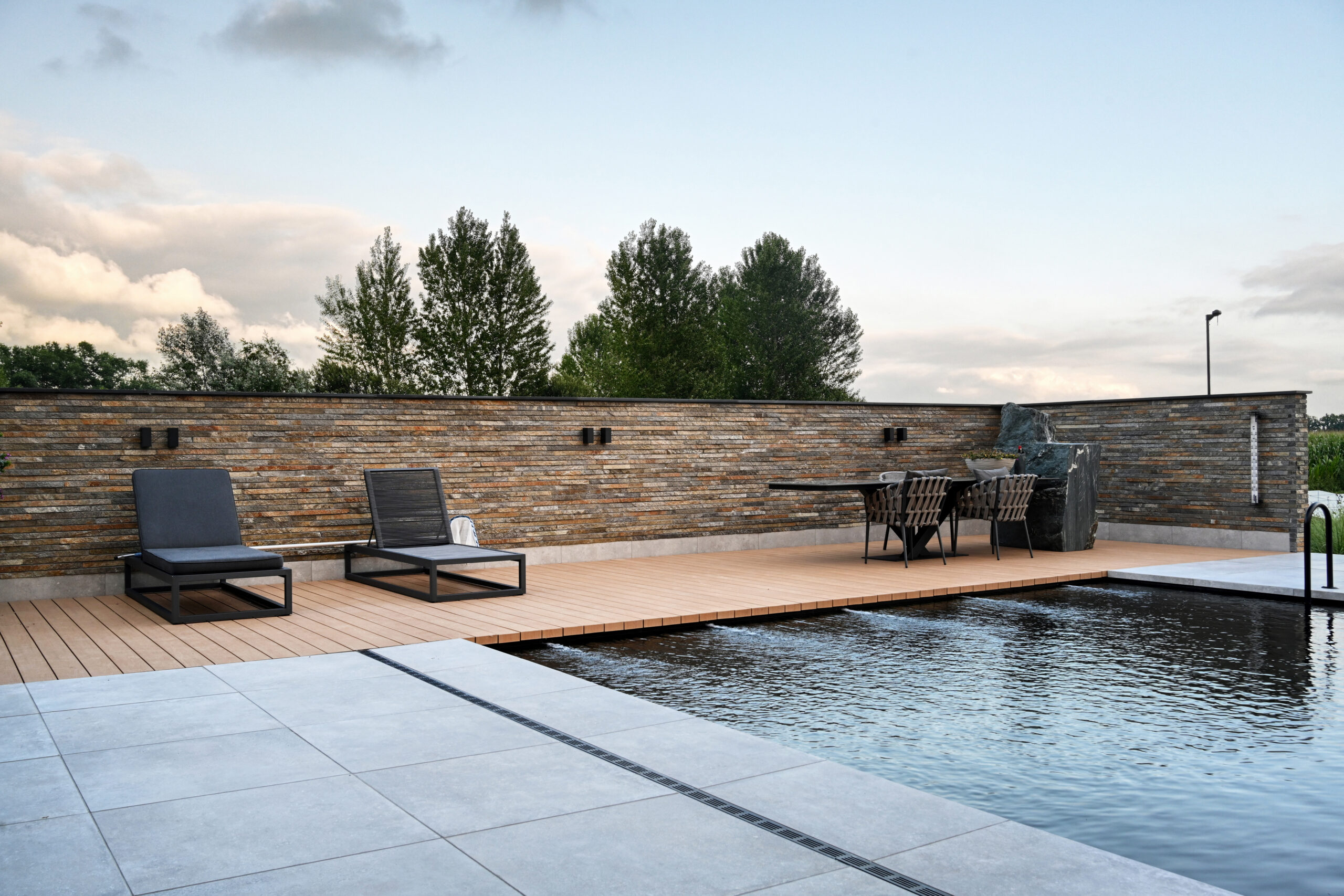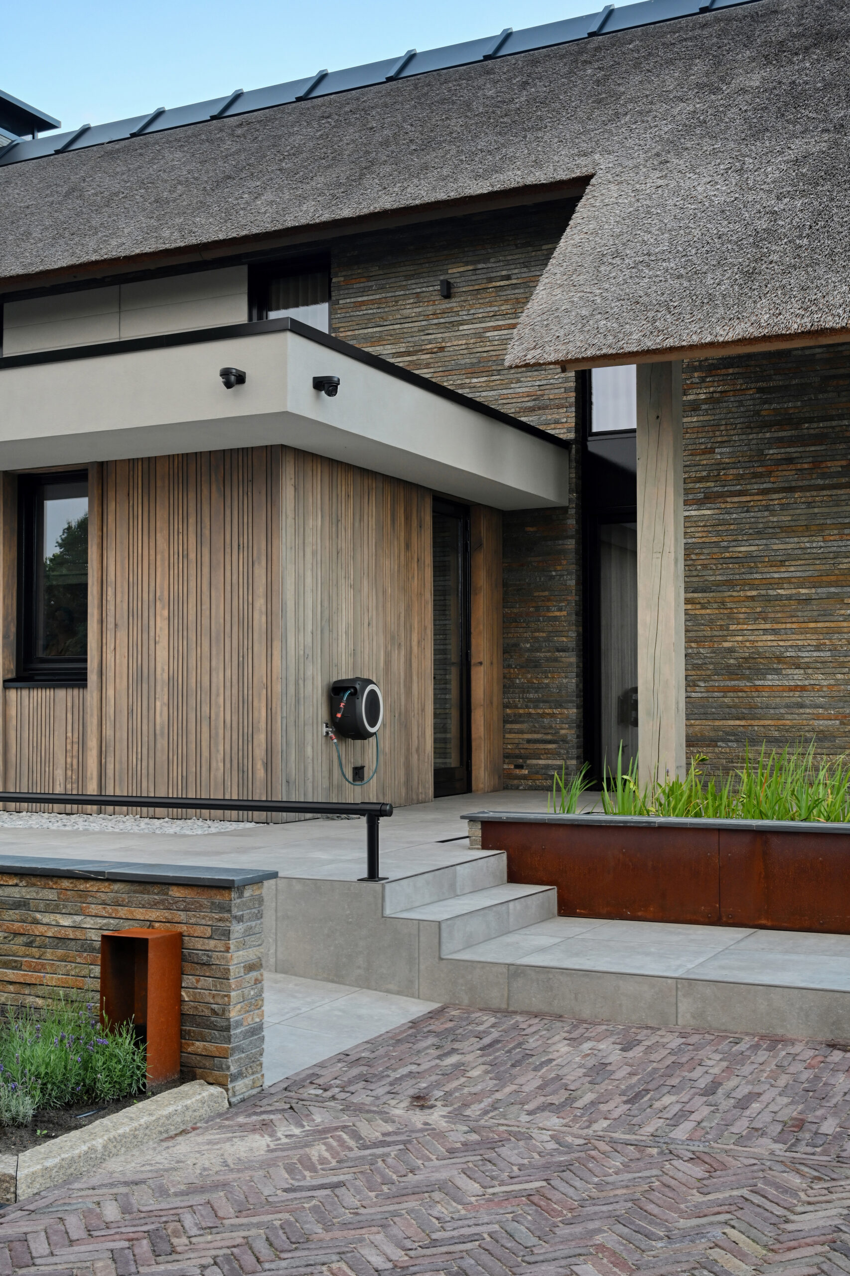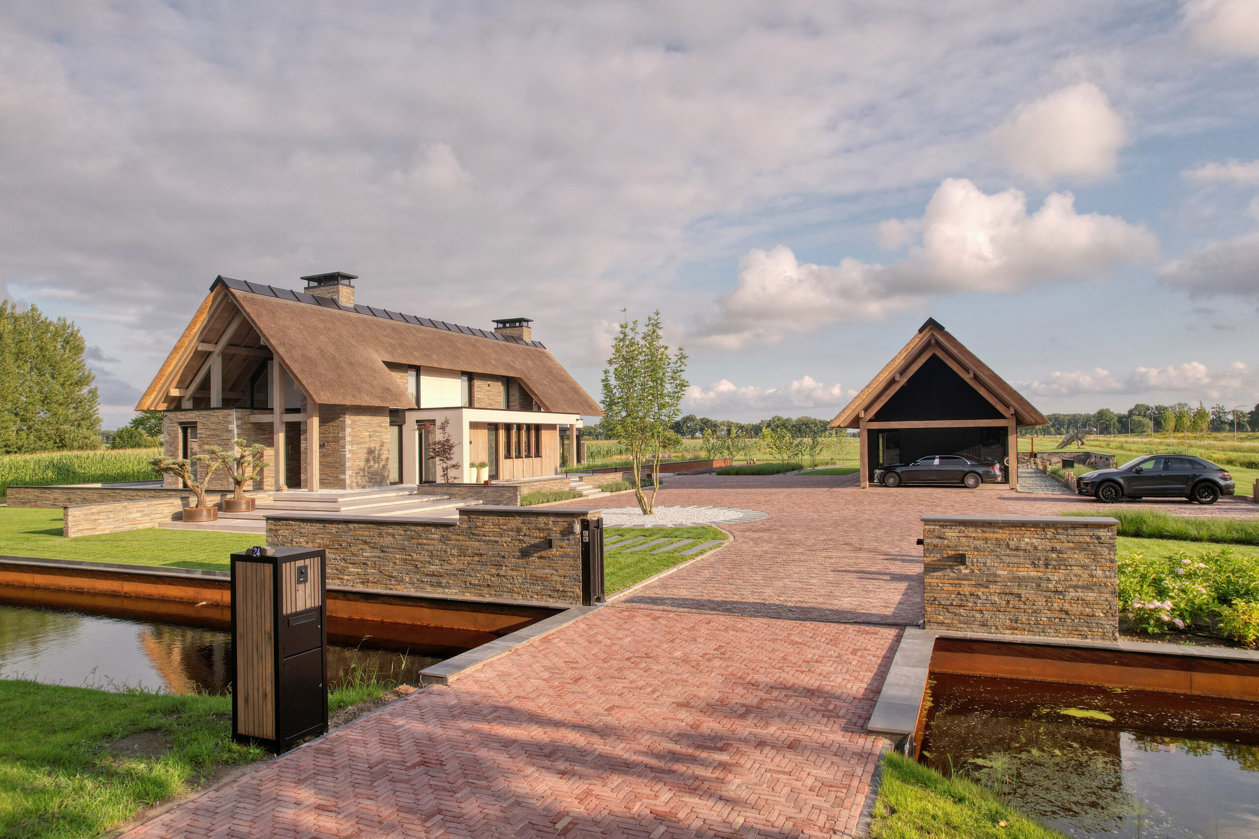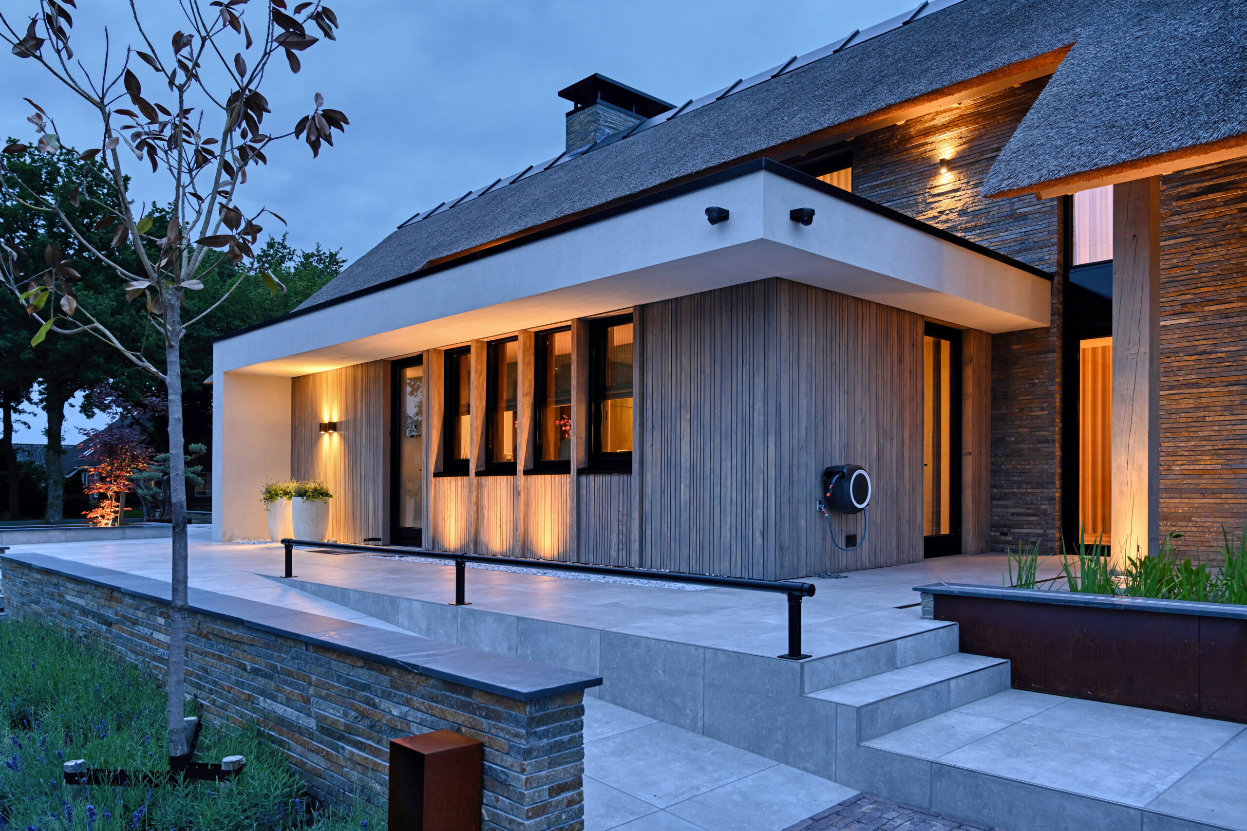 De Droomvilla Hollandscheveld is een modern woonproject waarin natuursteen de hoofdrol speelt. Van de gevel tot de tuin en het interieur is natuursteen op unieke wijze toegepast, met oog voor detail en vakmanschap. Voor dit project is gekozen voor de Lapide Bricks in KV12, een gevelsteen gemaakt van 100% natuursteen. Deze steen combineert de uitstraling van traditioneel metselwerk met de pure, robuuste textuur van natuursteen. Het resultaat is een gevel die tijdloos én onderscheidend is — perfect passend bij de moderne architectuur van deze villa. Niet alleen aan de buitenzijde, maar ook in de tuin en het interieur is natuursteen toegepast. Grove natuursteenelementen zorgen voor een krachtig lijnenspel, terwijl de fijnere afwerkingen binnen zorgen voor rust en luxe. Zo vormt natuursteen de verbindende factor in het totale ontwerp. De Lapide Bricks zijn niet alleen esthetisch, maar ook duurzaam. Gemaakt van een herbruikbaar, natuurlijk materiaal dragen ze bij aan een lange levensduur en een milieuvriendelijke bouwstijl. Droomvilla Hollandscheveld laat zien wat er mogelijk is wanneer natuursteen centraal staat — puur, tijdloos en duurzaam. Garagedeur op maat: Different Doors, Fotografie: Henk Sieders. The Art of Living magazine – Fotografie: Jaro van Meerten.