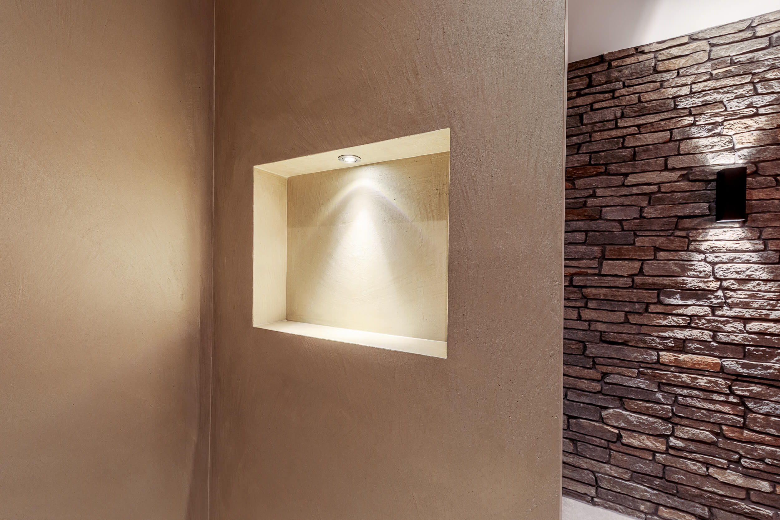 Deze villa heeft een zeer interessante en speelse opbouw. De entree bevindt zich verhoogd, waardoor het uitzicht op de tuin ook verhoogd ligt. De tuin bestaat trapsgewijs ook uit diverse hoogtes. In de (gedeeltelijk) ondergrondse ruimte bevinden zich de garage, sauna ruimte en slaapkamers. Overal zijn natuursteen elementen terug te zien: bij de entree, diverse tuinelementen, de schoorstenen, grote kolommen in het interieur en in de ondergrondse wellness. De sortering Karlovy Vary geeft de woning sfeer en karakter en sluit prachtig aan op het interieur. Interieur ontwerp en realisatie: Wijs Wonen.
