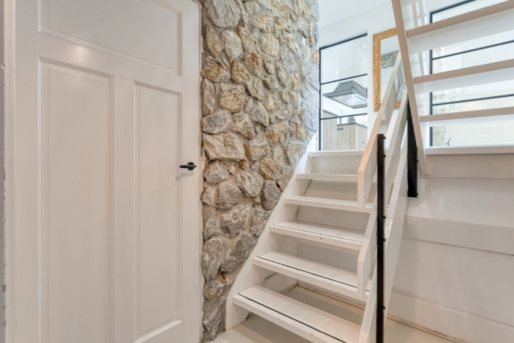 De toegepaste natuursteenstrips zijn verlijmd op de ondergrond en zorgvuldig verwerkt om het natuurlijke karakter van de steen te behouden. Bij dit type toepassing ligt de focus op een onregelmatig, organisch gevelbeeld waarbij geen strakke lijnvoering wordt nagestreefd, maar juist een natuurlijk verloop. Afhankelijk van het gewenste eindbeeld kunnen strips strak tegen elkaar worden verlijmd of met voeg worden toegepast. In dit project is gekozen voor een verwerking die de ruwe en ambachtelijke uitstraling van het materiaal versterkt.