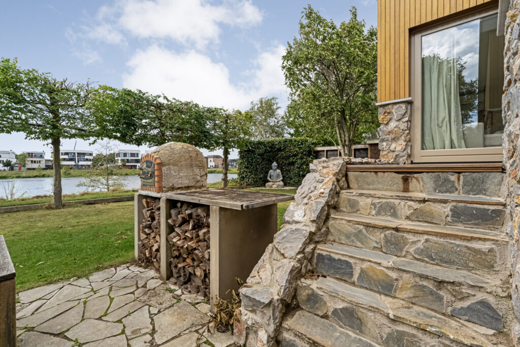 Bij deze woning is gekozen voor een gevelafwerking waarin natuurlijke materialen centraal staan. De robuuste NG Rock Rhodos natuursteenstrips vormen een karaktervolle basis en geven de woning een tijdloze en ambachtelijke uitstraling. De grillige structuur en warme kleurnuances van het natuursteen zorgen voor een levendig gevelbeeld waarin elke steen uniek is. Door de strips zorgvuldig te verlijmen ontstaat een verfijnd geheel dat zowel krachtig als natuurlijk oogt. Het natuursteen vormt een mooi contrast met de verticale houten gevelbekleding, waardoor een harmonieuze balans ontstaat tussen stoer en warm. Het resultaat is een woning waarin materiaalgebruik en vakmanschap samenkomen. Een duurzaam project waarin natuursteen niet alleen functioneel is, maar ook bepalend is voor de uitstraling van het geheel.