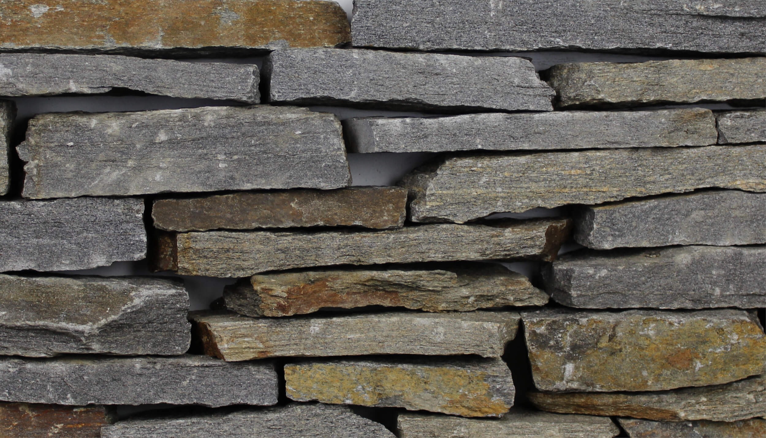 Er is bewust gekozen voor de natuursteen sortering Karlovy Vary. Dit product kenmerkt zich door zijn grijze, gele en bruine kleurtinten. Deze tinten komen overeen met de kleuren die in de omgeving te herkennen zijn. Daarnaast past de grijze kleur goed bij het stucwerk en staan de bruine tinten erg mooi bij de verschillende houten elementen. Er is gekozen voor metselstenen in verschillende formaten, waardoor de gevel er robuust uit komt te zien. Wat daar ook aan bijdraagt is het gegeven dat delen van de voeg wegeslepen zijn. De stenen lijken hierdoor op elkaar gestapeld.
