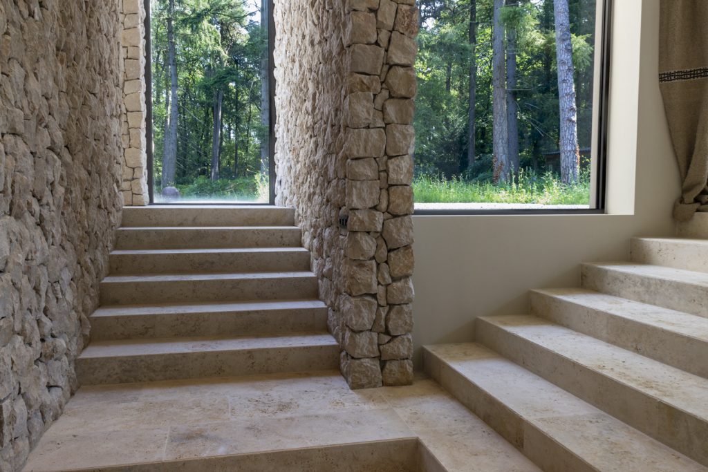 Omringd door hoge bomen bevindt zich deze waanzinnige villa. Deze luxe villa ligt verhoogd op de kavel en bestaat uit gigantische kolommen natuursteen, strak stucwerk en grote raampartijen. Het interieur bevat veel licht en ruimte, geen gesloten deuren, maar juist een open ruimte waarbij de hoogteverschillen van het exterieur ook binnen terugkomen. De villa is zeer verrassend en alles behalve volgens de hedendaagse Nederlands architectuur. De foto’s spreken voor zich, onze NG Rock speelt de hoofdrol van het project! Daarnaast hebben wij ook de travertin vloer in de gehele woning geleverd.