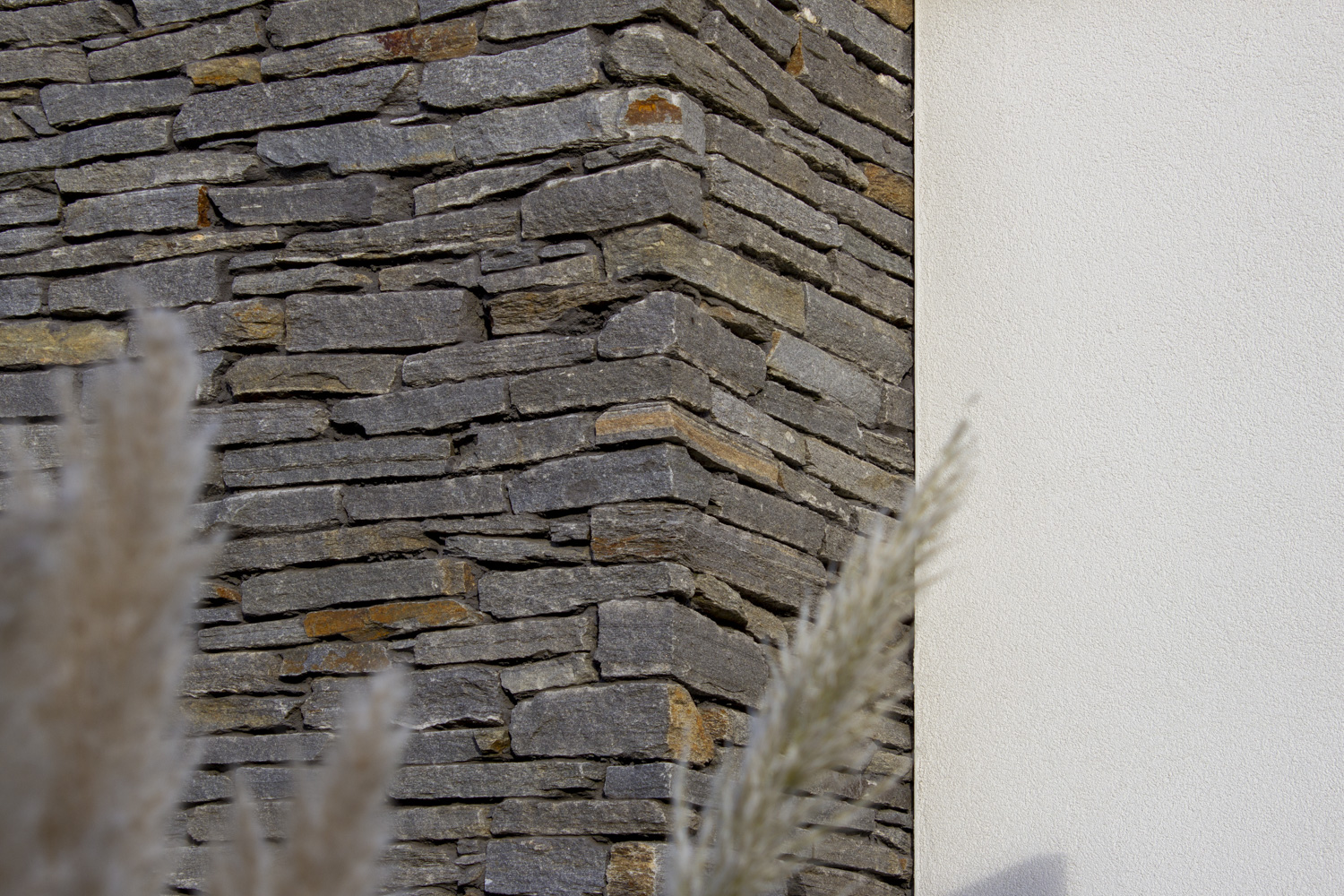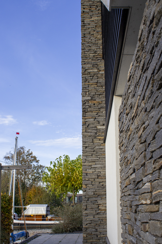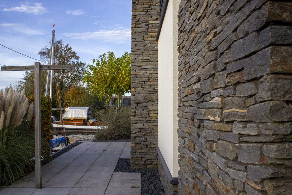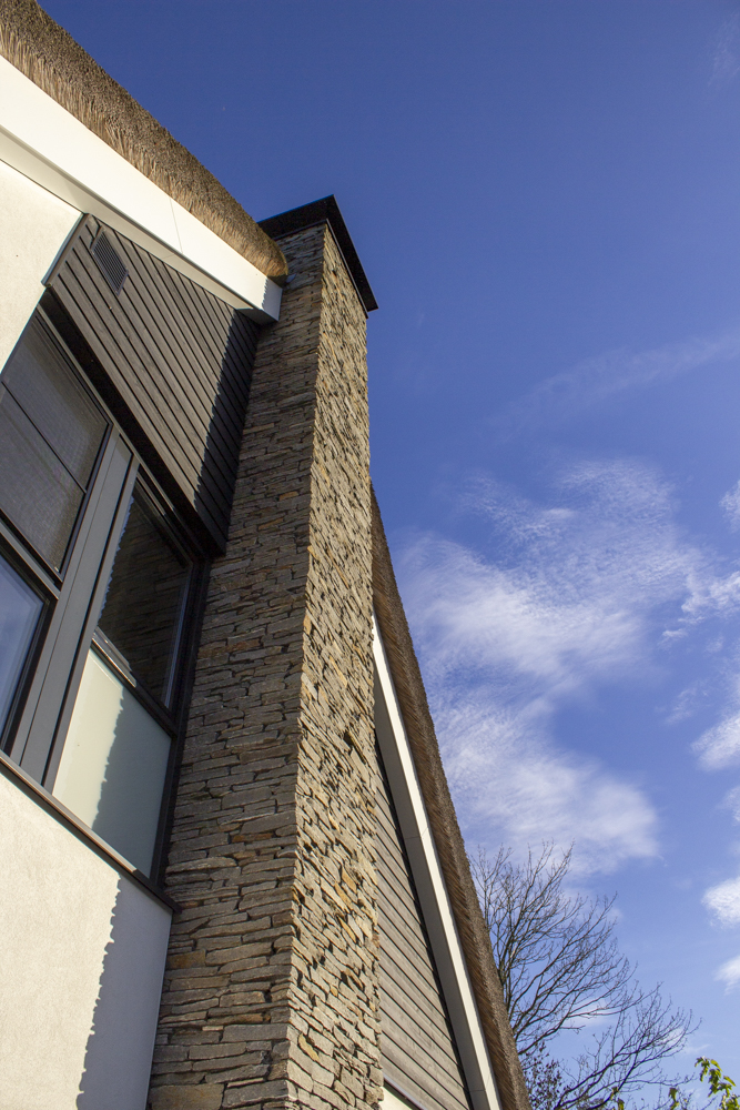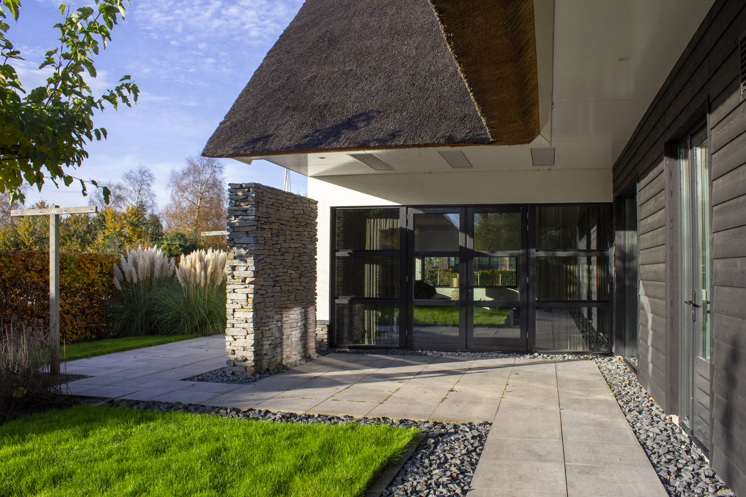 Deze moderne villa in Langweer combineert verfijnde architectuur met pure ambacht. Het natuurlijke rieten dak, de strakke zwarte gevelbekleding en de karakteristieke Karlovy Vary Natuurgevelsteen vormen samen een krachtige en tijdloze uitstraling. De zorgvuldig gemetselde hoekdetails en het subtiele lijnenspel laten zien hoe esthetiek en vakmanschap elkaar versterken. Een exclusief thuis waarin materiaal, vorm en omgeving volledig in balans zijn.