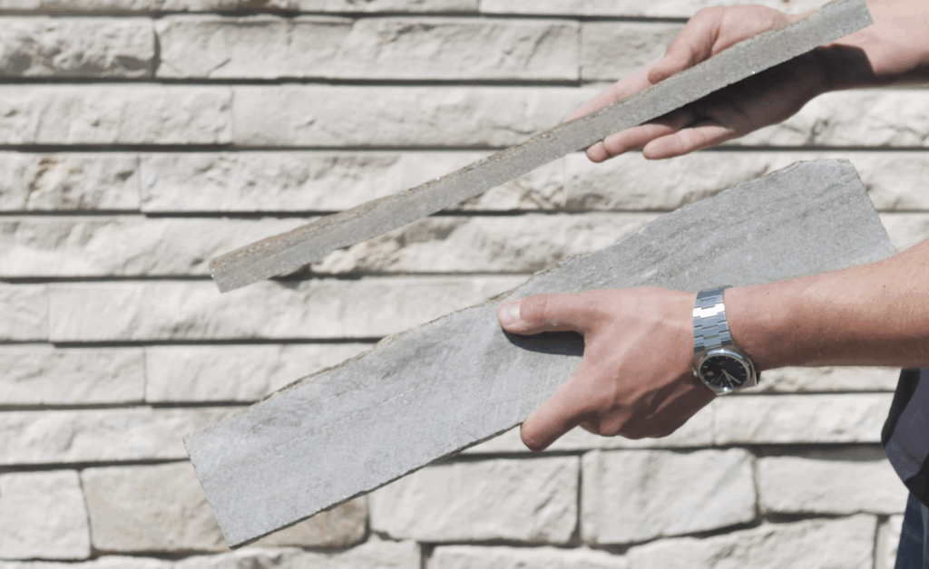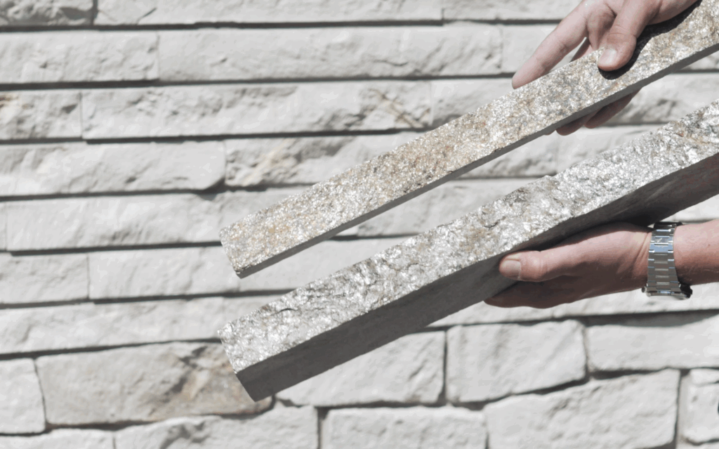 Voor specifieke toepassingen bieden wij ook natuursteenstrips (2–5 cm dik), bijvoorbeeld bij lichte constructies of renovaties. Steenstrips buiten kunnen worden verlijmd met of zonder voeg. Belangrijk is dat de juiste achter constructie aanwezig is. We adviseren hier altijd projectmatig over.